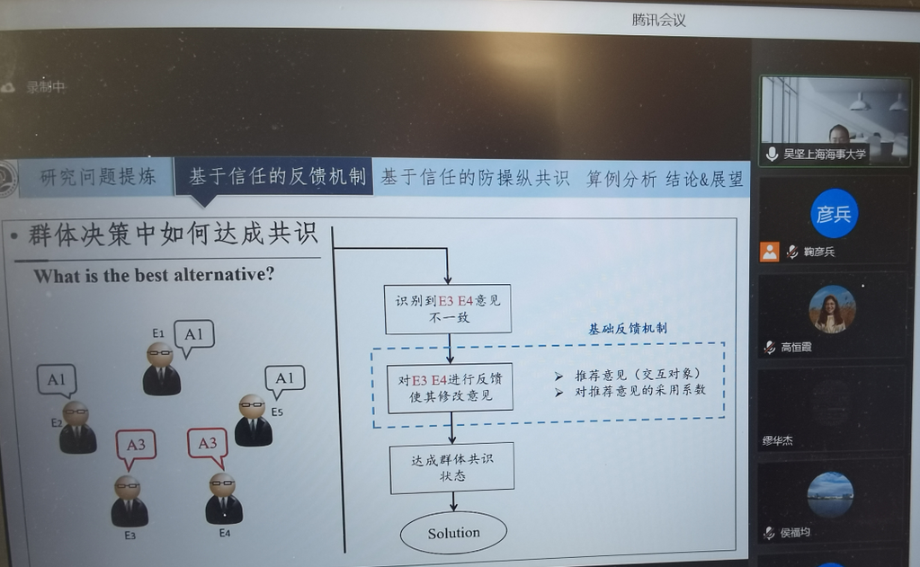 On the morning of December 14, the 21st Issue of the 21st Century, we were honored to invite Professor Wu Jian from the School of Economics and Management of Shanghai Maritime University to deliver an academic report entitled "Group Consensus Decision-making Based on Social Network Trust". Professor JU YanBING, Department OF Management Engineering, School OF Management and Economics, Beijing Institute of Technology, presided over the report. Affected by the epidemic, this report was conducted online. Some teachers and graduate students of the School of Management and Economics attended the report.