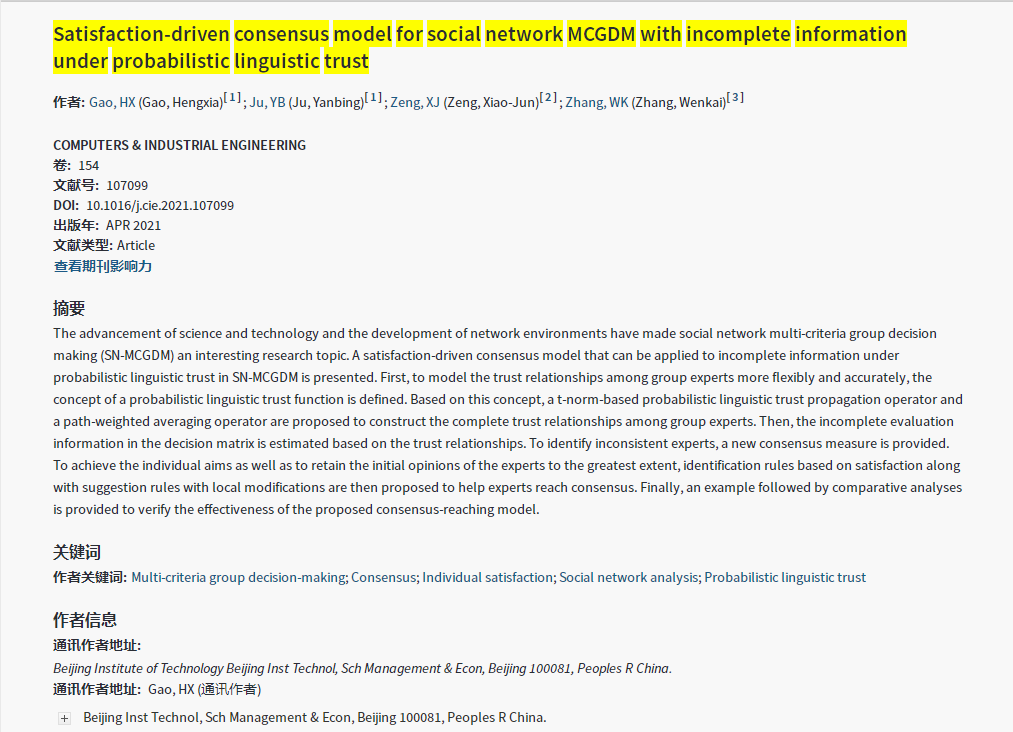发表刊物:Computers & Industrial Engineering