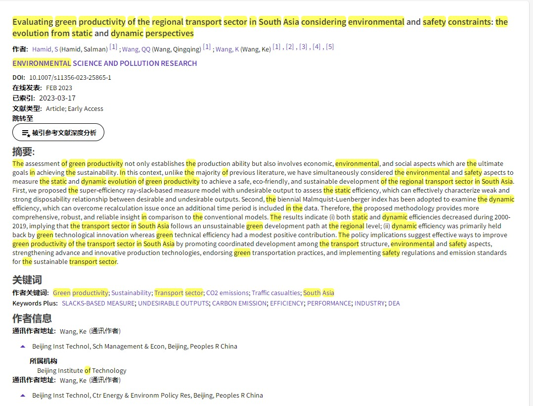 发表刊物:Environmental Science and Pollution Research