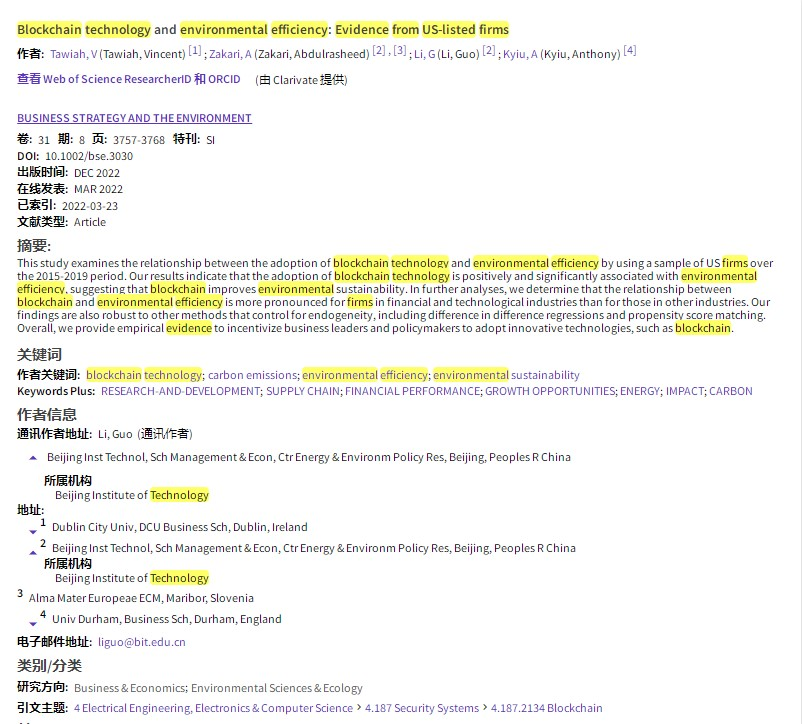 Blockchain technology and environmental efficiency: Evidence from US-listed firms