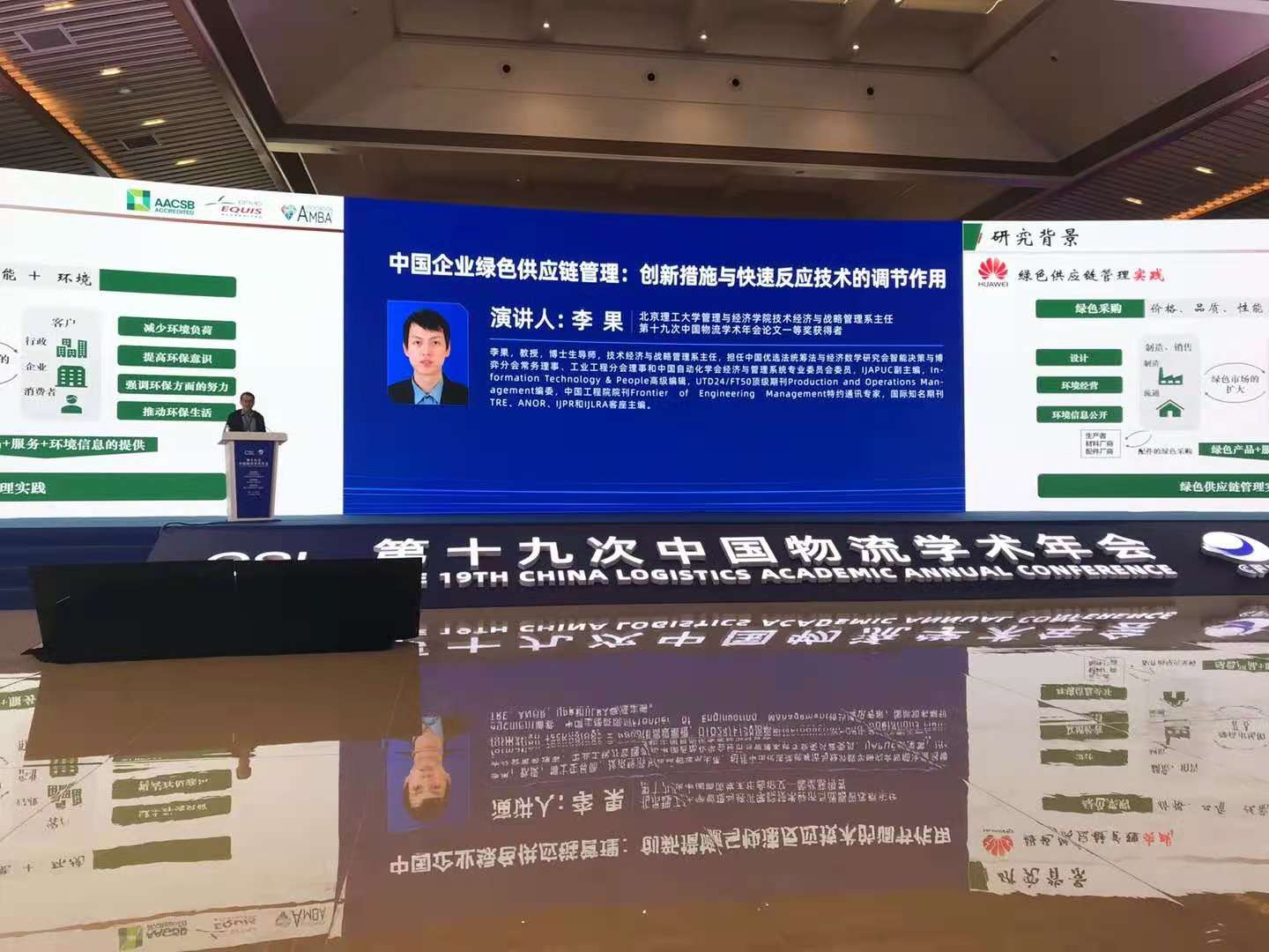 永利官网管理与经济学院李果教授及其博士生李琳,以及香港理工大学Tsan-Ming Choi教授和美国德克萨斯大学达拉斯分校Suresh Sethi教授合作的论文《中国企业绿色供应链管理:创新措施与快速反应技术的调节作用》(Green supply chain management in Chinese firms: Innovative measures and the moderating role of quick response technology)荣获第十九次中国物流学术年会一等奖第一名,李果教授并应邀作大会报告。