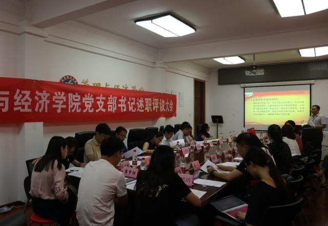 为全面贯彻落实党的十九大、十九届二中全会、三中全会精神、以推进“两学一做”学习教育常态化、制度化,不断加强领导班子建设和党支部规范化建设,不断提升党支部的凝聚力和战斗力,管理与经济公司党委常态化开展党支部书记抓党建述职评议,继 2017年实现党支部书记述职全覆盖以来,2018年7月2日在主楼317会议室再次召开新一轮党支部书记抓党建工作现场述职。公司党委委员、党政联席会成员出席会议,教师党支部书记、员工党支部书记参加会议,副书记、副经理彭明雪主持会议。公司党委组织部徐碧瑢,党建和思想政治工作专家巫后新,现场指导工作。